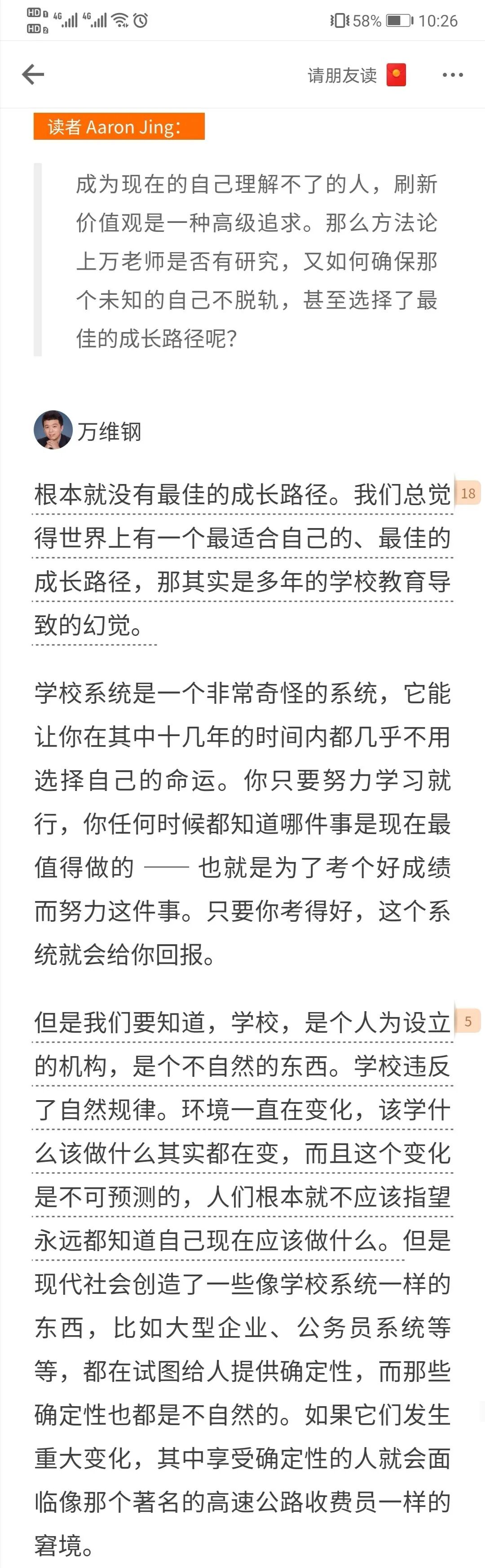 1、今天作者说到暴力破解成长问题的时候,让我想到万老师有一次答读者问的内容: