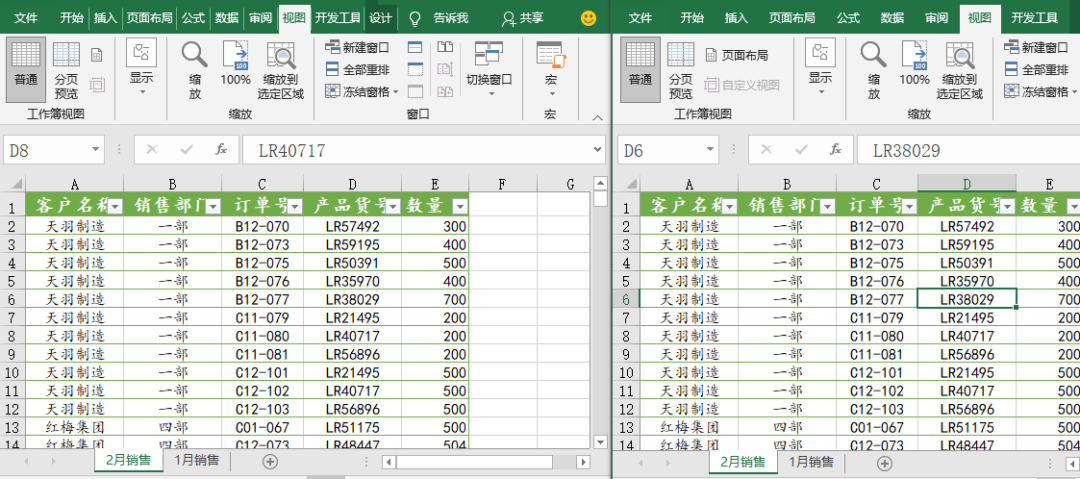导读:小伙伴们好啊,今天咱们说说Excel中的多窗口操作。话说老张家二嫂子有两个月的销售数据,分别放在不同的工作表