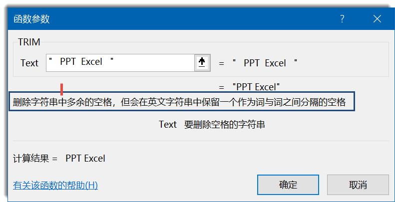 第一反应就是查找替换。但问题来了,字符串中间起到分隔符作用的空格不能去掉。比如" PPT Excel ",前后的空格删除,中间的连续的多个空格需要保留一个,正确结果是"PPT Excel"