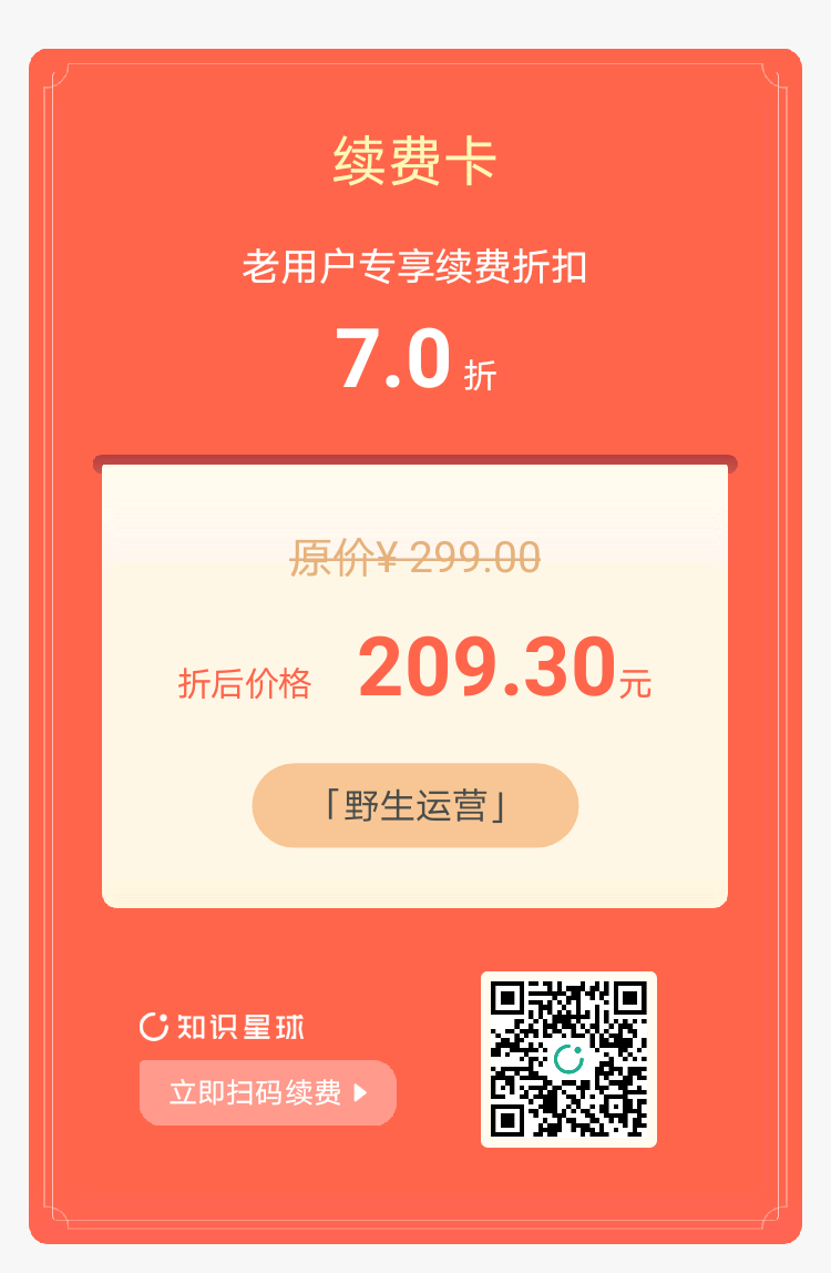 感谢星友们一直以来的支持,本次分销金提升至 20%,凡成功邀请 1 人,邀请人可返现 32 元,你的朋友可返现 26 元,如果你也认可星球价值的价值,欢迎邀请更多的朋友加入星球,一起进步(提醒朋友先领取优惠券),想了解更多关于知识星球产品信息,戳:野生运营知识星球的优惠,你终于等到了……