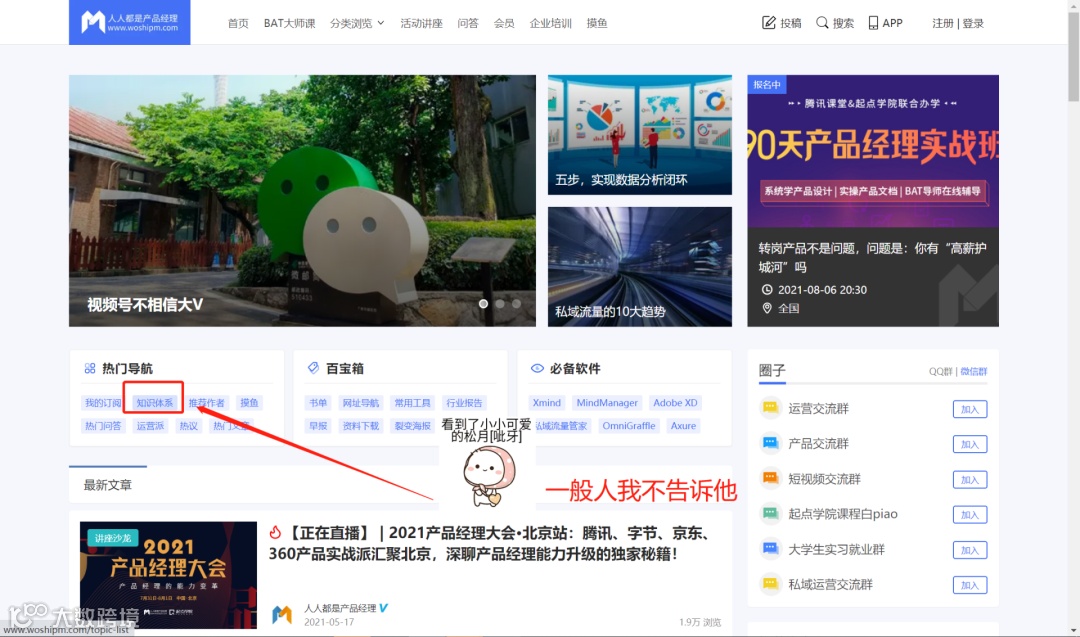 2、专业视角加入后,只是谱系里的概念,为此你还需要加入枝干和树叶,我常用的方法是,先看对应的章节提炼方法论,如果这部分知识很重要,我还会去“人人都是产品经理”这个网站上“知识体系”这个版块去补充知识,这一步就是专业视角的补充。