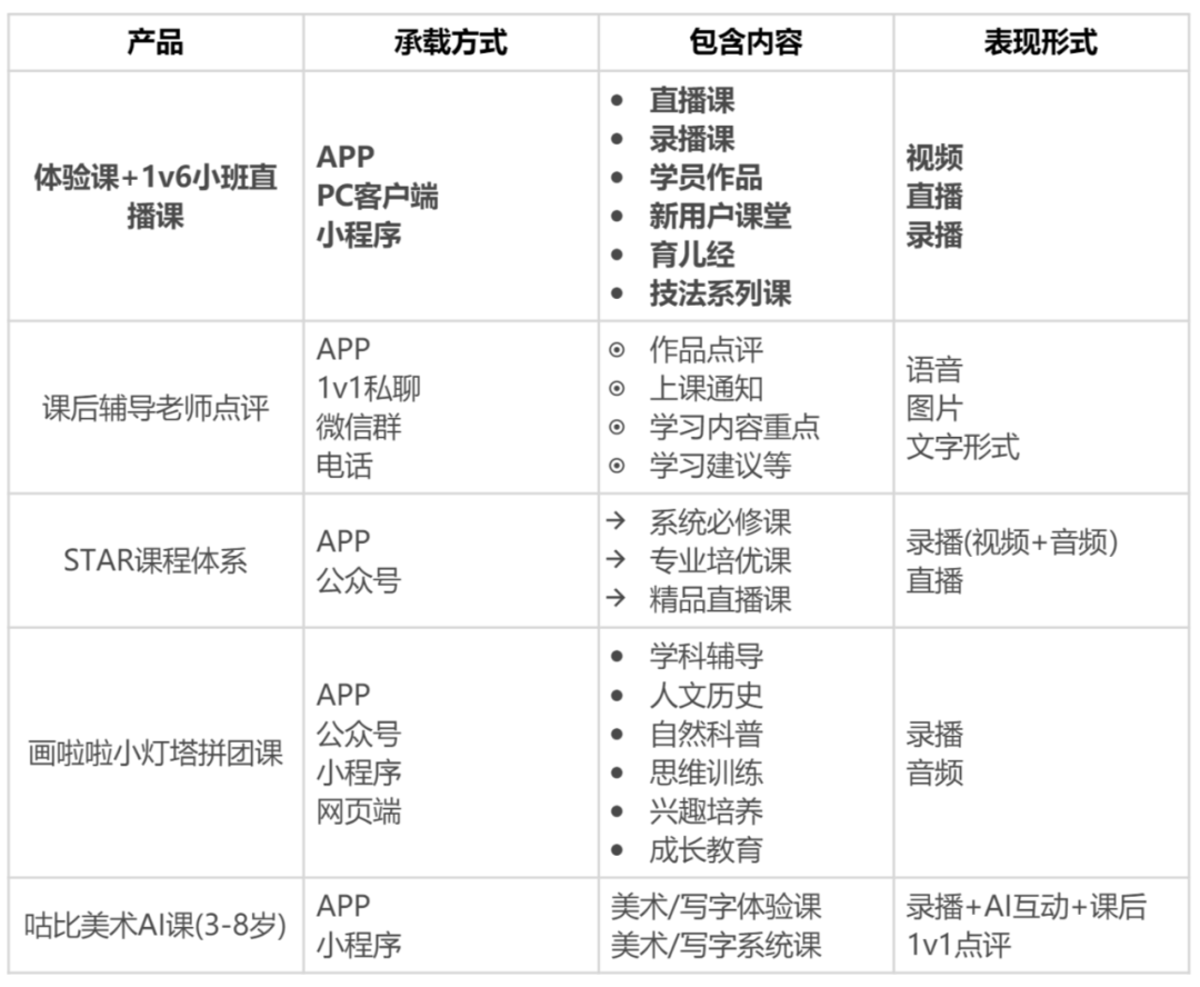 3大产品:“画啦啦少儿美术、画啦啦小灯塔、咕比美术AI课”