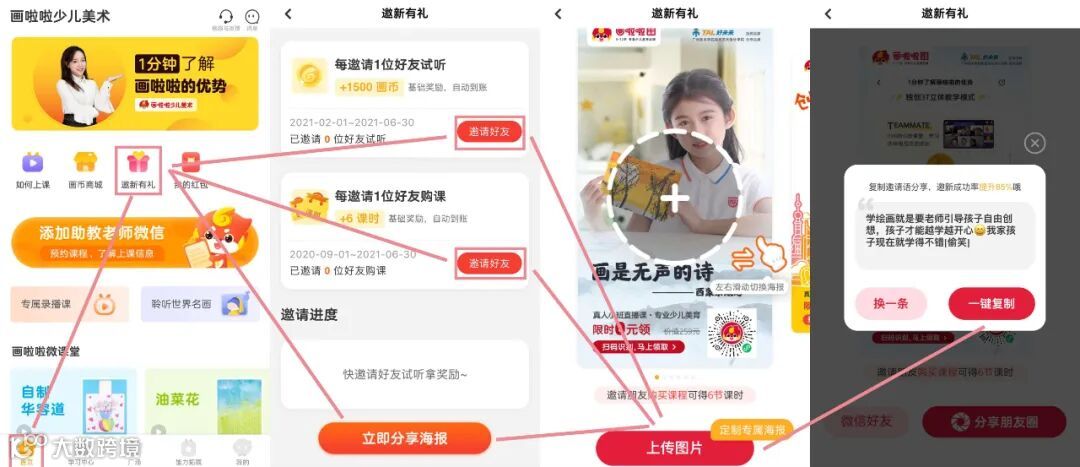 邀请有礼,画啦啦少儿美术的转介绍拆解