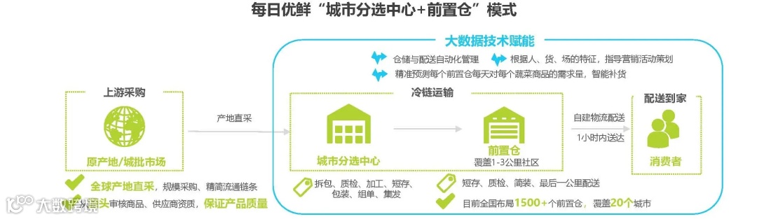 ① 前置仓模式:“城市分选中心、社区配送中心”的极速达冷链物流体系,控制成本