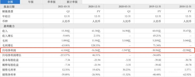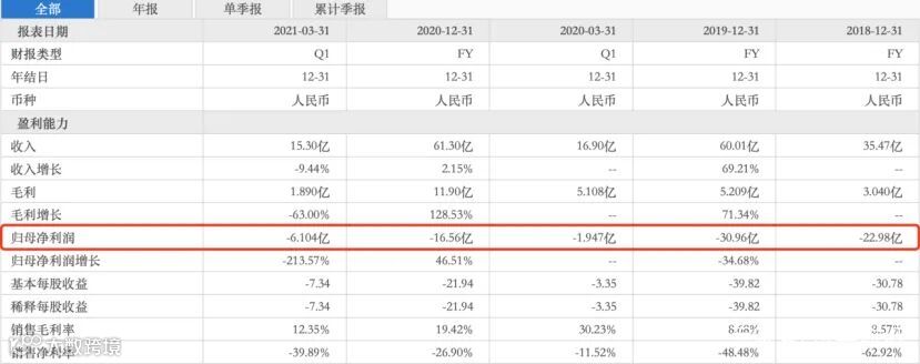 根据招股书显示:2018年至2020年,每日优鲜已连亏三年,净利润分别为-22.98亿元、-30.96亿元、-16.56亿元。并且2021年第一季度,每日优鲜依旧未能实现扭亏,净利润为-6.10亿元。