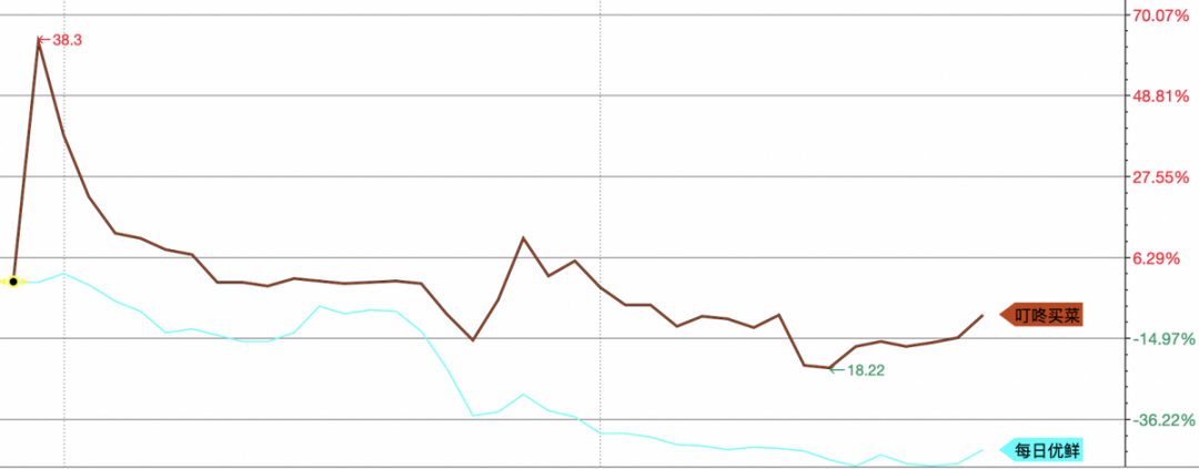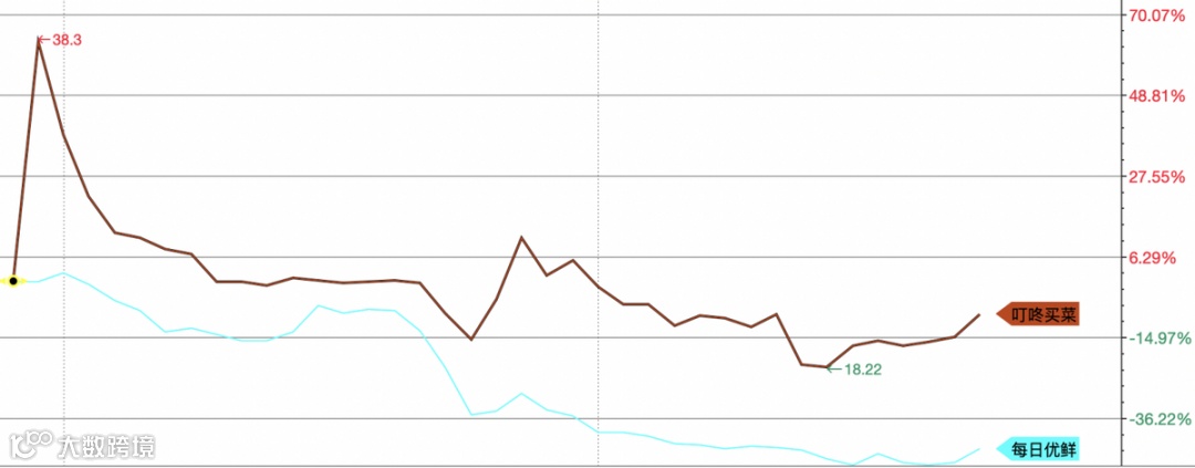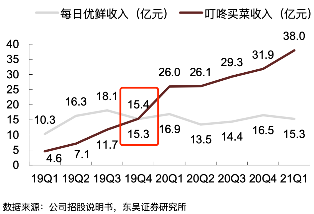 目前,作为国内生鲜电商仅有的两家采用前置仓经营模式的公司,叮咚买菜借助疫情已经完成了对每日优鲜的超越,已成为前置仓模式营收规模最大的公司。