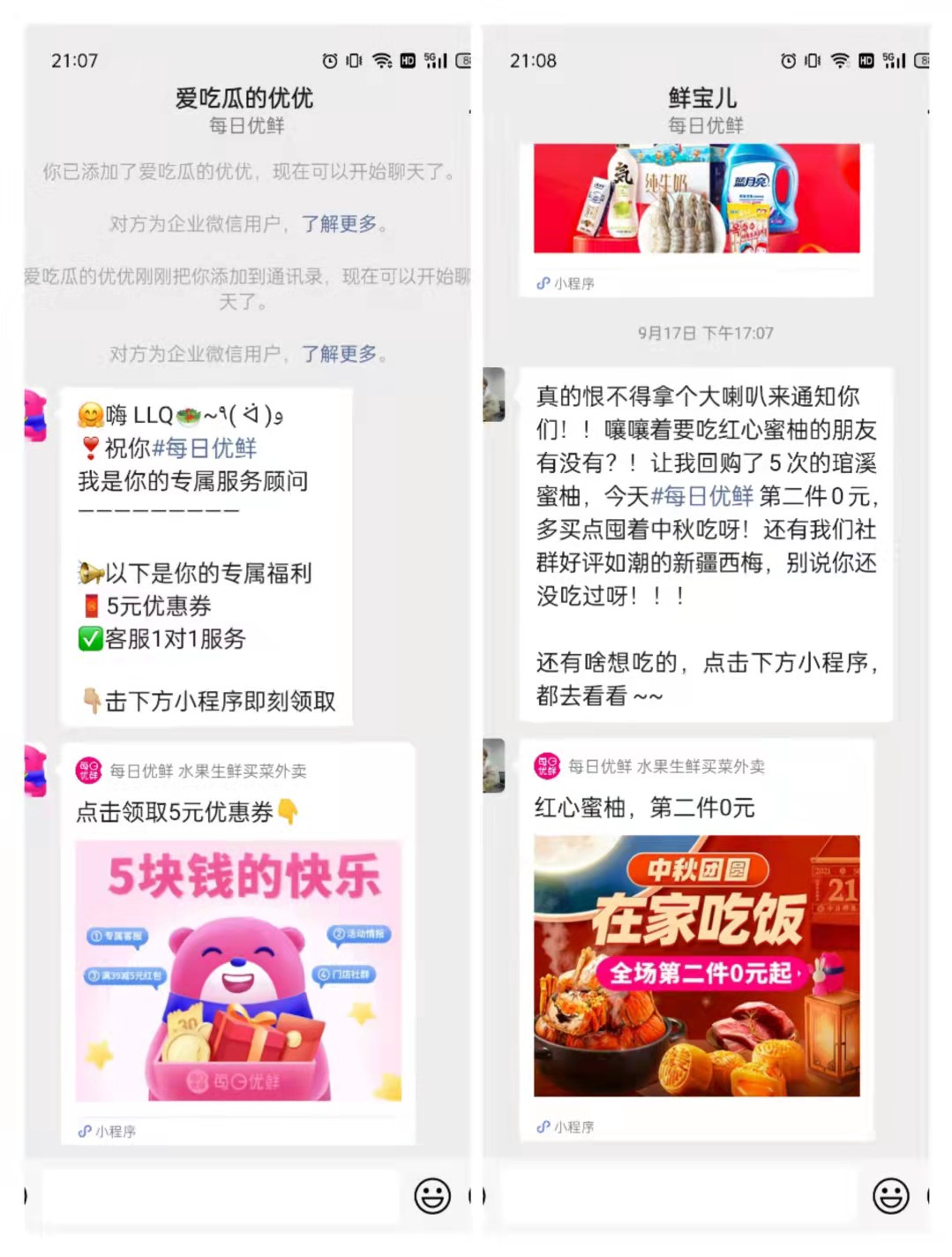 当用户通过公域渠道进入到每日优鲜私域(app、小程序、公众号、个人号、社群等)里时,下一步就需要转化,而用户转化的场景在app和小程序中。需要激活用户来打开app/小程序。