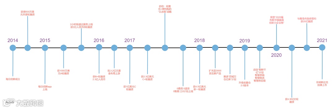 6 月 25 日,每日优鲜上市了,市值约 32 亿美元,约合人民币 200 亿元,成为生鲜第一股。这是过去 10 年里,生鲜电商领域烧钱大战的一个阶段性注脚:终于诞生了一家上市公司。即便这家公司依旧没有盈利。(from 极客公园)