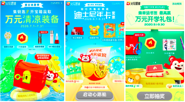 当然,实际的抽奖方式远不止这几种,比如火花思维的老带新,除了采用大转盘玩法,还设计了如“集钥匙开箱”、“集船票开船”、“集幸运书签”等新玩法,大大增加了趣味性,提升了老用户参与度。