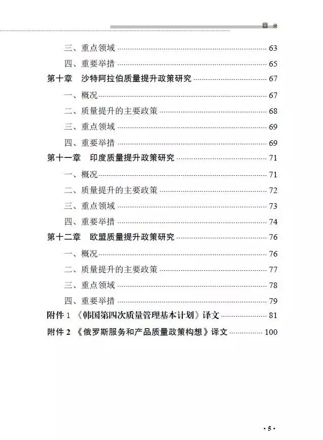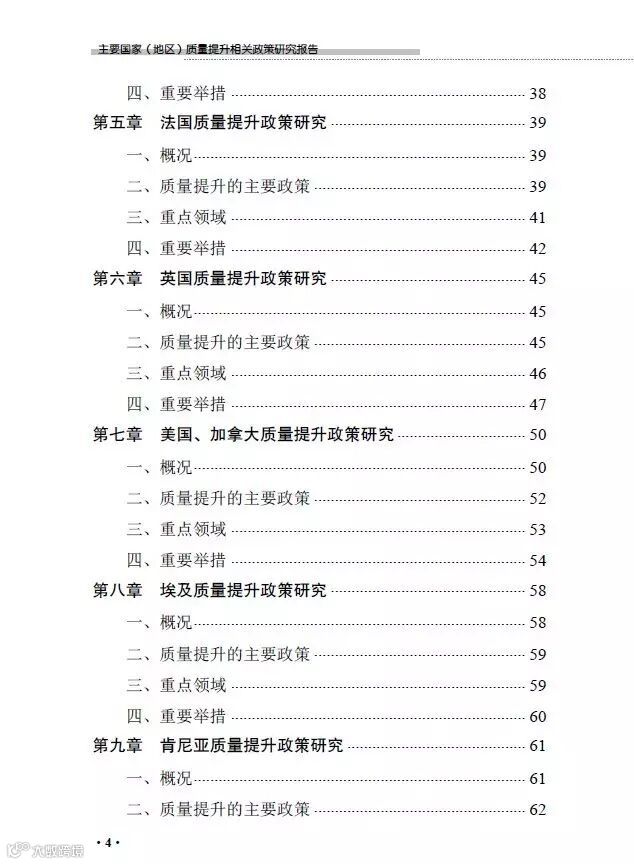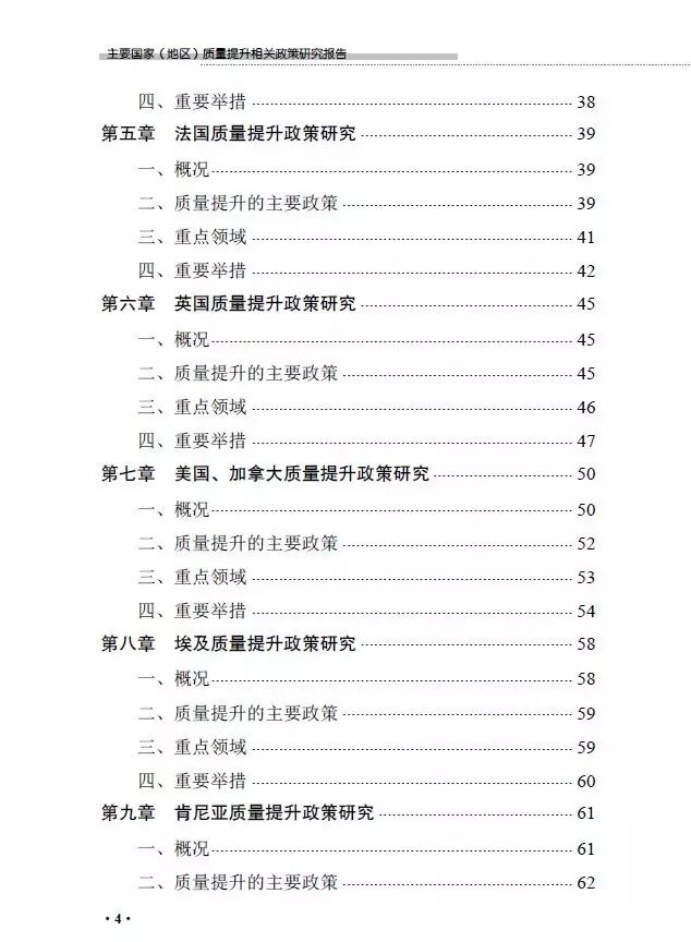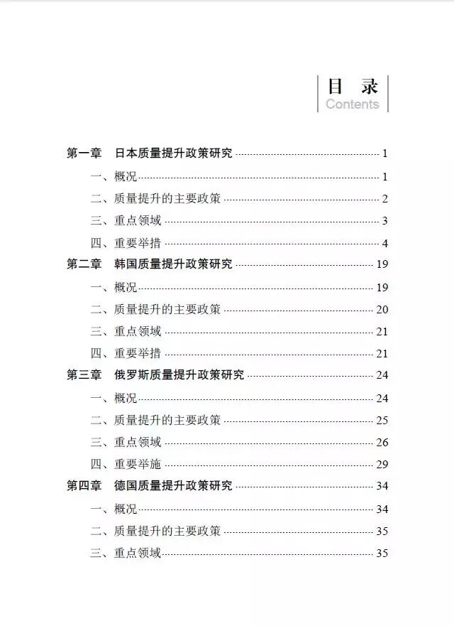 为支撑质检总局质量提升相关工作,充分借鉴国际国外先进经验,国家标准委迅速组织吉林东北亚标准研究中心、深圳欧洲标准研究中心、上海北美标准研究中心、中国标准化研究院、黑龙江省标准化研究院、宁夏回族自治区标准化院、成都市标准化研究院等单位及时收集整理了主要典型国家(地区)的质量提升相关政策,形成了《主要国家(地区)质量提升相关政策研究报告》,具体包括日本、韩国、俄罗斯、美国、德国、欧盟等13个国家(地区)的质量政策。特别是日本、韩国、美国、德国、欧盟等国家(地区)采取了一系列政策措施,促进质量提升,强化产业竞争力。这些国家(地区)在质量提升方面采取的相关政策及重要举措值得我国充分关注和借鉴。