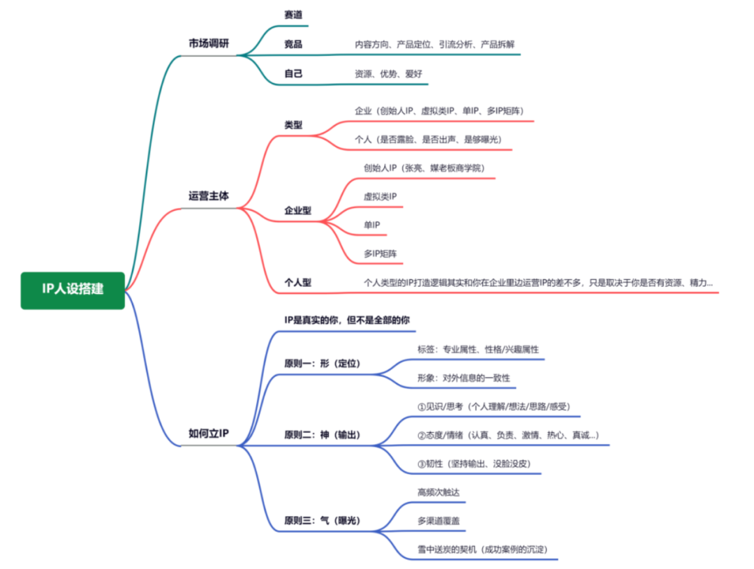 人设搭建主要分为三块,第一部分是调研,第二部分选择运营的主体,第三部分怎么把IP立起来。