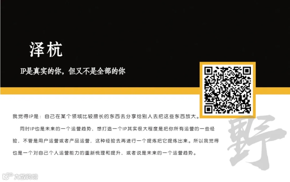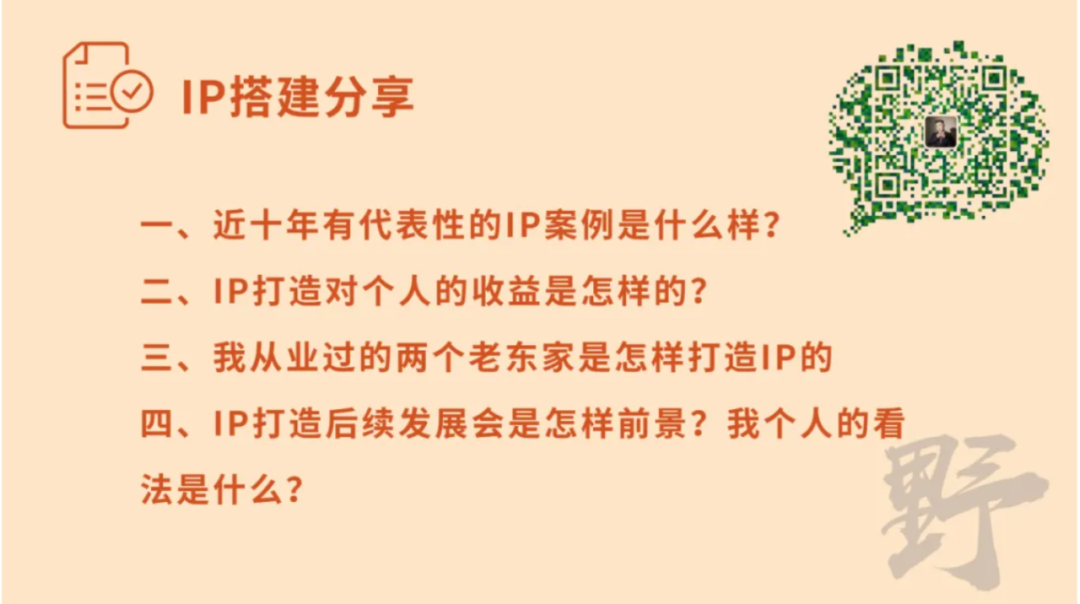 同时IP也是未来的一个运营趋势,想打造一个IP其实很大程度是把你所有运营的一些经验,不管是用户运营或者产品运营,这种经验去再进行一个提炼,把它提炼出来。所以我觉得也是一个对自己个人运营能力的重新梳理和提升,或者说是未来的一个运营趋势。