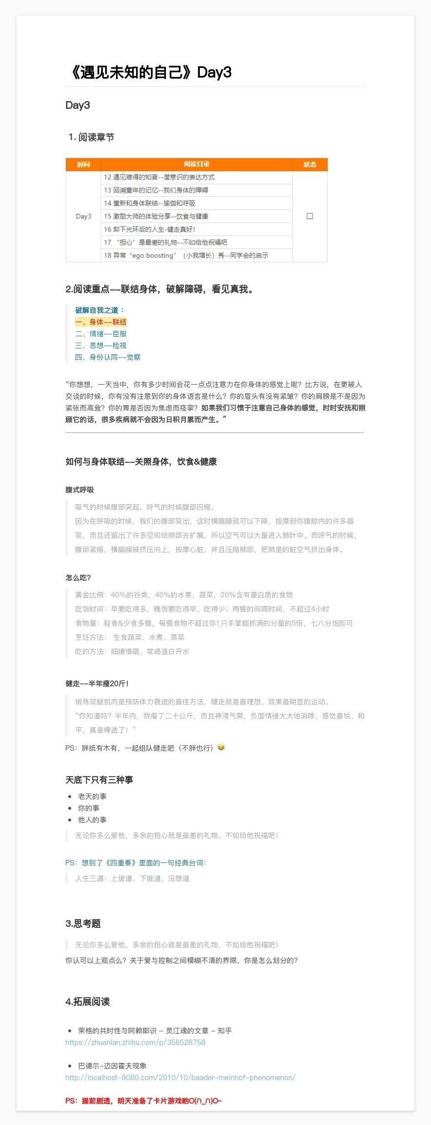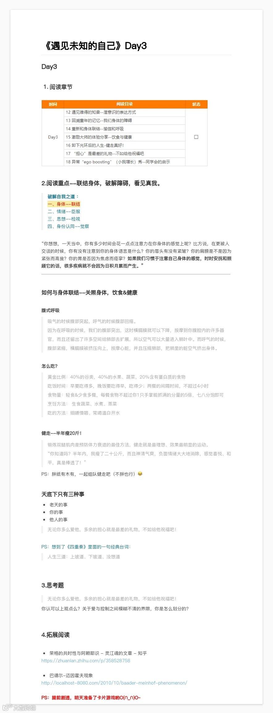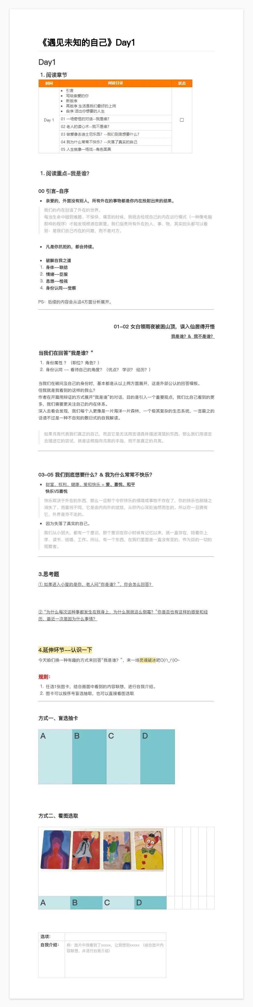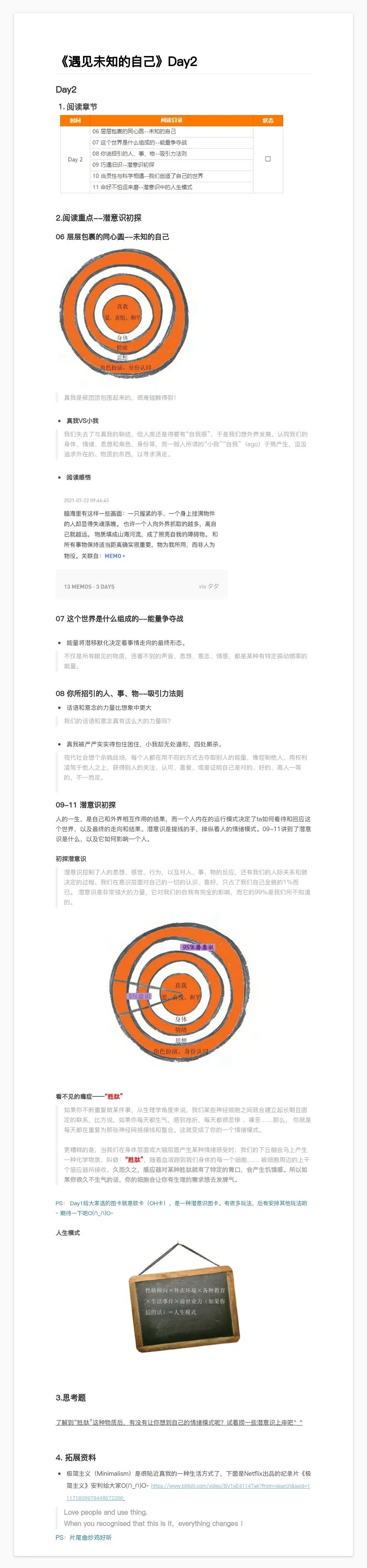 8月22日-8月28日,野生运营读书会结束了第 40 本书《遇见未知的自己》的共读,7 天时间领读人夕夕带大家读完了全书精华部分。看似挺鸡汤的一本书,但如果你深处困难之境,你就会感受到其解救的力量,至今让我印象深刻的一句话“亲爱的,外面没有别人,只有你自己”,每次我遇到困难时,这句话都像光一样照进来~