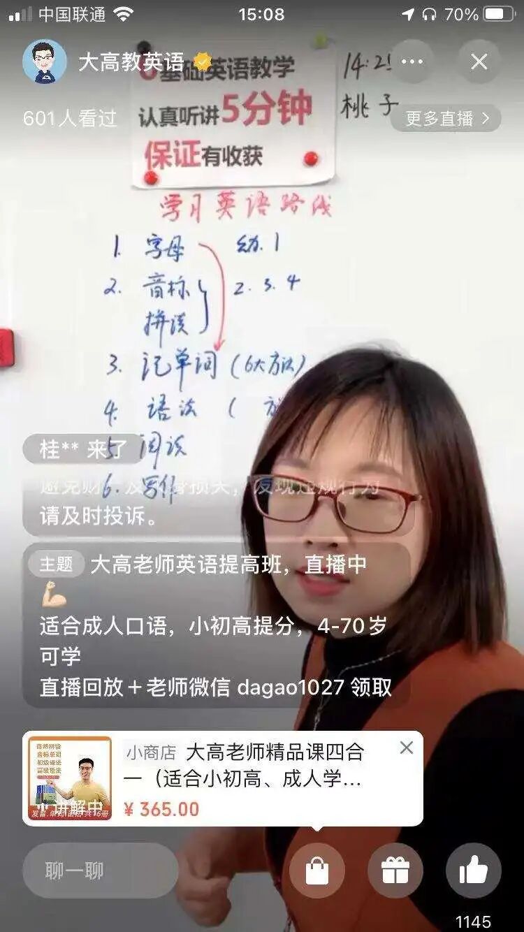2.直播间每天早晚7:00直播→直播内容简单易懂→主题提示直播内容受众人群4-70岁→直播回放需+个人微信→小商店售卖365元精品课程书籍→变现→小商城各大机构学习礼盒→分销变现