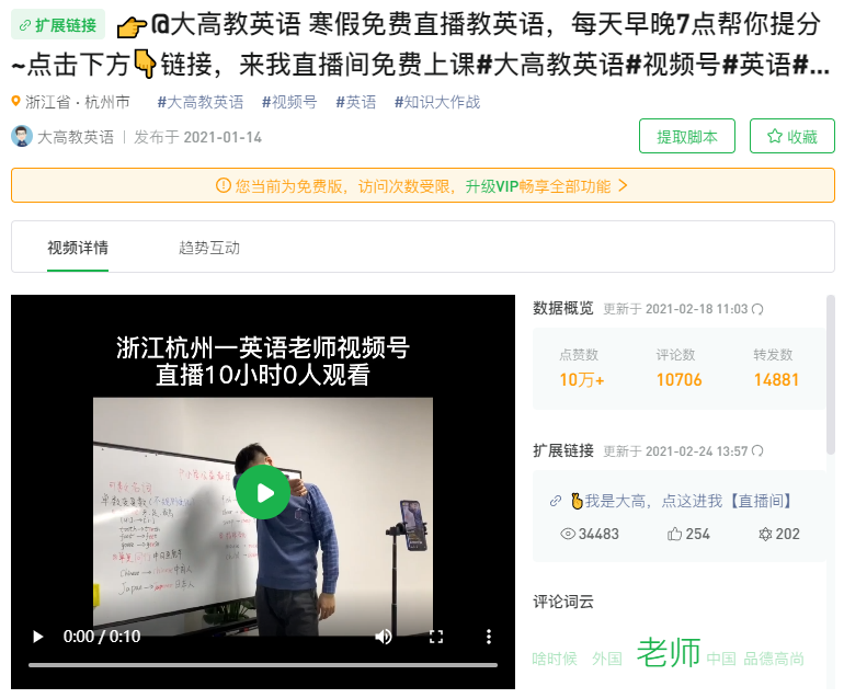 “浙江杭州一英语老师视频号直播10小时0人观看”
