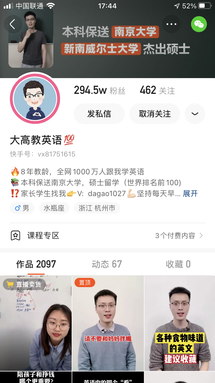 今天咱们来聊聊一个很值得研究的视频号账号——大高教英语