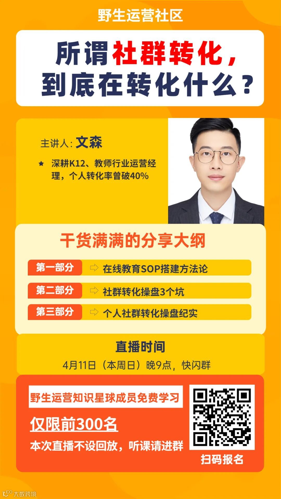 总在低头做事,这个问题你是否认真想过呢?明晚9点,我邀请了深耕K12的文森老师和你分享《所谓社群转化,到底转化了什么?》,希望对正在做/准备做社群转化的你有所帮助。
