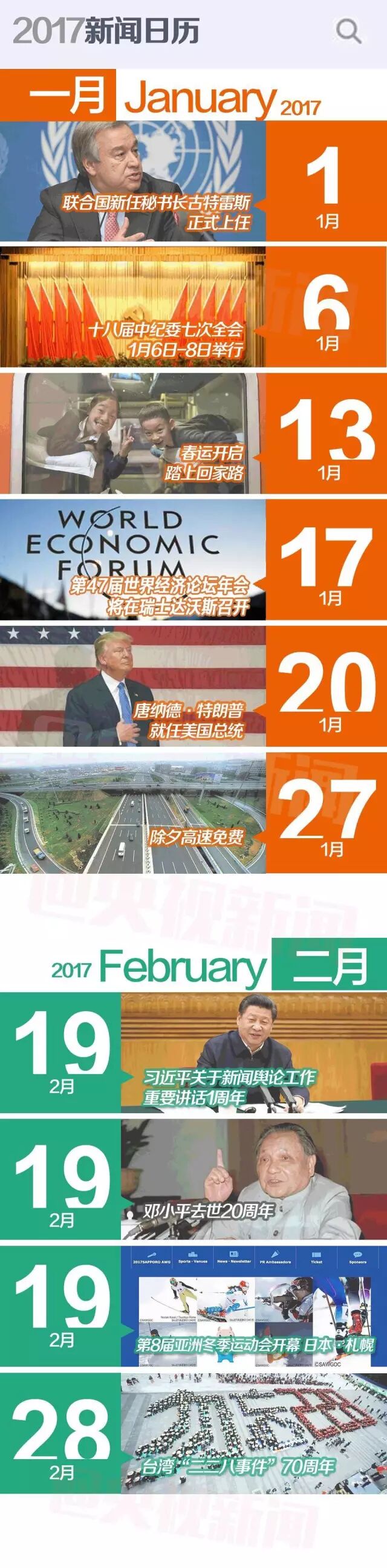 下面以日历的形式,为您梳理了2017年那些值得期待的新闻。