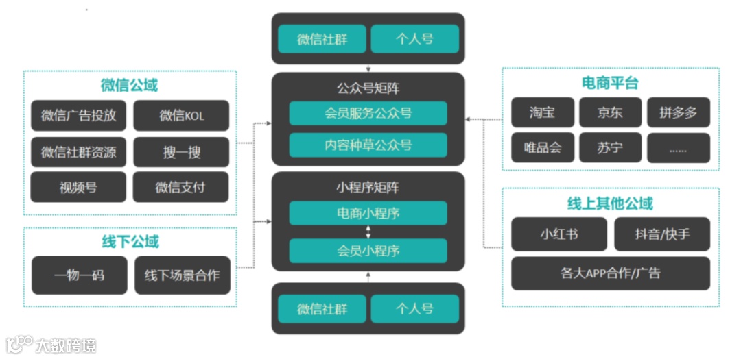 私域是个系统过程,从用户旅程上包括:添加个人微信号/进群—参加活动及互动—购买首单/复购—持续活跃和复购成为忠实顾客—私域转推介;从运营环节包括内容引流—社群促活\直播运营—用户分群运营—触达及召回。