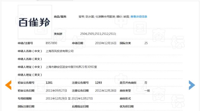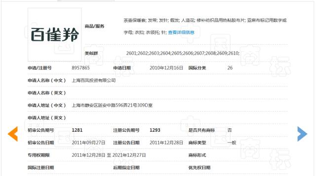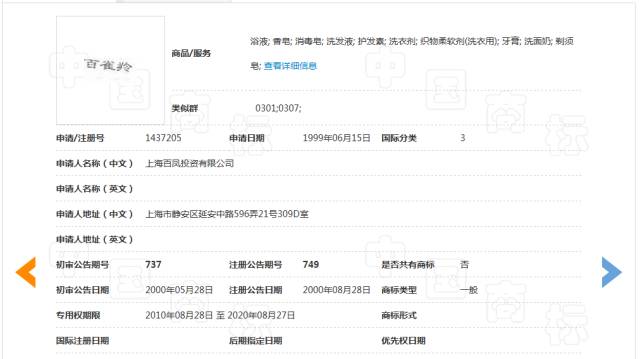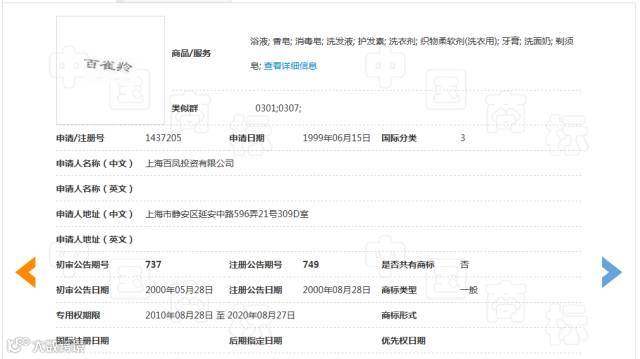 2、在争议商标申请日前,引证商标一、二、三均由上海百雀羚日用化学有限公司向商标局提出注册申请,分别核定使用在第25类防水服等商品上、在第26类衣扣等商品上、在第40类材料处理信息等服务上;引证商标四、五均由上海凤凰日用化学有限公司向商标局提出注册申请,核定使用在第3类化妆品、香皂等商品上,后经商标局核准转让予上海百雀羚日用化学有限公司。现上述引证商标均经商标局核准于2016年10月27日转让予本案申请人,均为有效注册商标。