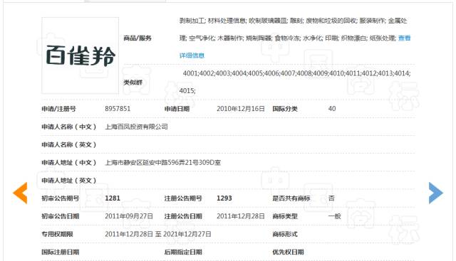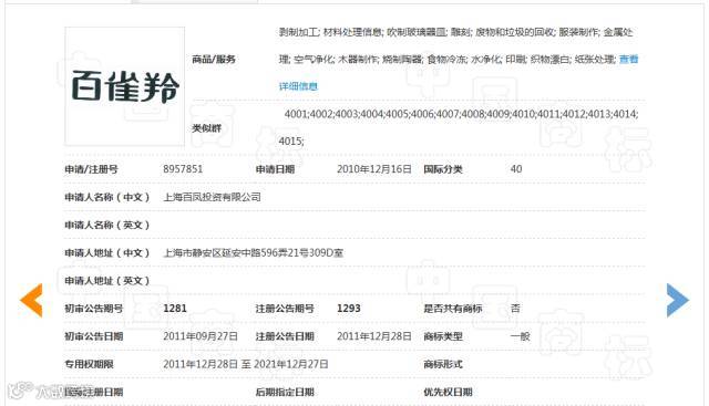 6、申请人受让“百雀羚”商标的证明文件、民国时期商标注册信息及其名下商标列表等;