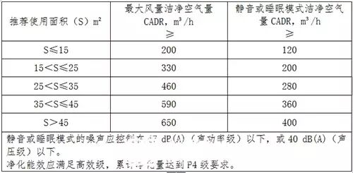 空气净化器去除细颗粒物(PM2.5)的洁净空气量限值要求
