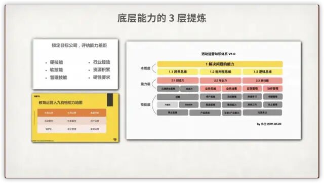 第3层就是对第2层能力的分解,分为技能、能力和本质3个层面,简历上需要的是技能和能力层面,面试需要考察的是本质层,就是思考逻辑、做事方法那些,第3层的分解,可以通过找专业书籍、结合自己的经验和同行请教等方法总结出来。