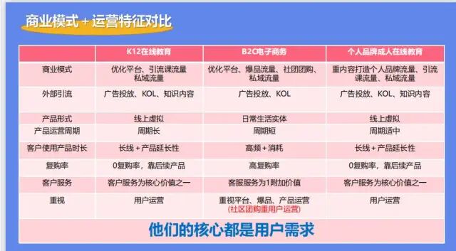 比如,K12行业和B2C或者是个人品牌成人在线教育比较: