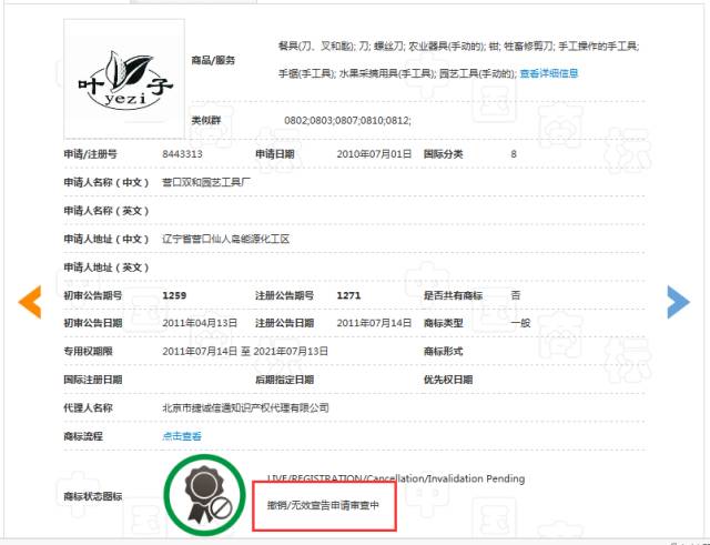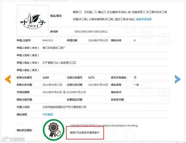 5.指定使用商品(第8类、类似群0801-0812):磨具(手工具);园艺工具(手动的);鱼叉;修指甲成套工具;胡桃钳;手工操作的手工具;调色刀;切刀;剑;刀叉餐具。
