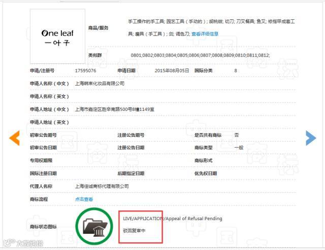 在原审程序中,韩束公司提交了其在第3类“化妆品”等商品上已注册的第7555764号“Oneleaf及图”商标和第8007767号“Oneleaf及图”商标的商标注册证。