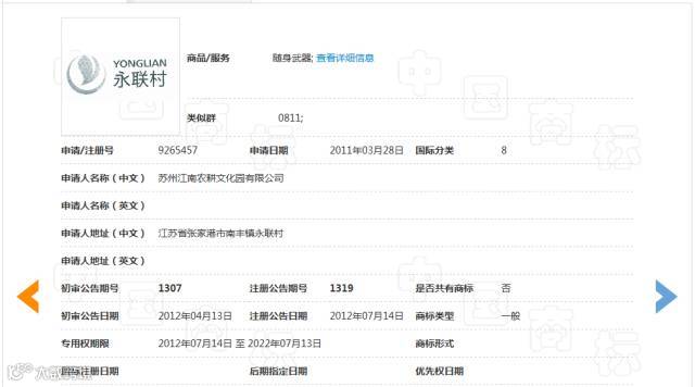 2017年1月20日,商标评审委员会作出被诉决定。该决定认定,诉争商标指定使用在“园艺工具(手动的)、手工操作的手工具、胡桃钳、切刀、刀叉餐具”商品上与引证商标一构成使用在同一种或类似商品上的近似商标;诉争商标指定使用的“磨具(手工具)、鱼叉、修指甲成套工具、调色刀、剑”商品与引证商标一核定使用的商品不够成类似商品;诉争商标与第9265457号“永联村YONGLIAN及图”商标(简称引证商标二)、第9274917号图形商标(简称引证商标三)不构成近似商标。据此,决定:诉争商标在“磨具(手工具)、鱼叉、修指甲成套工具、调色刀、剑”商品上的注册申请予以初步审定,在其余复审商品上的注册申请予以驳回。