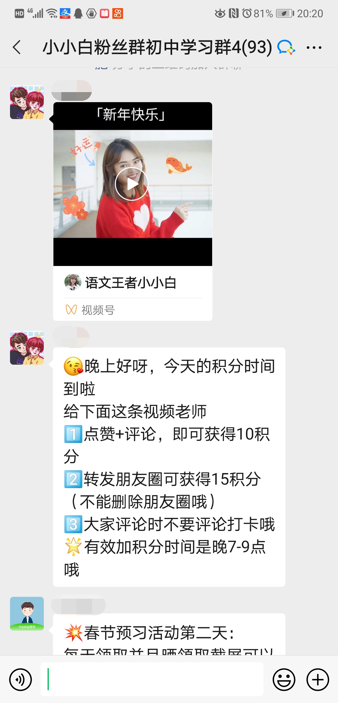而当用户来到微信群后,运营人员会通过一套社群积分系统的设计,驱使用户将视频号扩散出去。