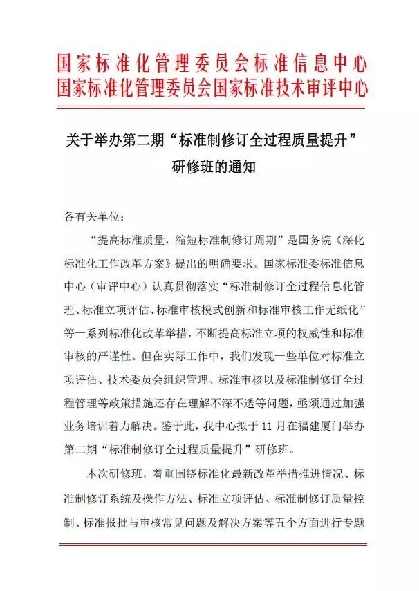 标准质量提升研修班第二期要开课了!