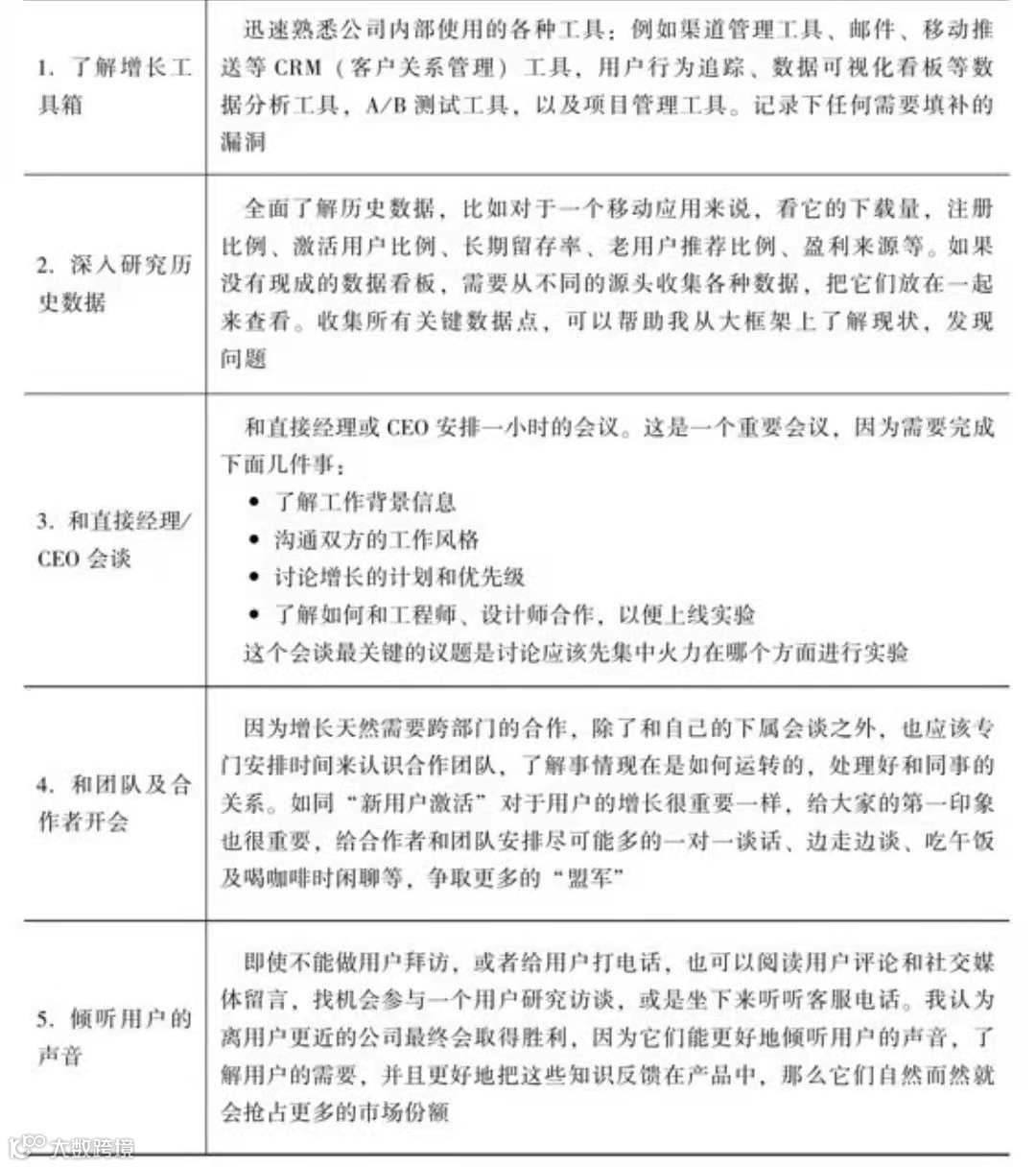 我这里有一个增长leader入职的行动计划表,如果你也是相关岗位,可以做个参考: