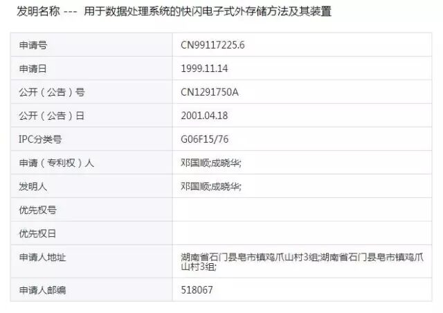 此次涉案发明专利为“用于数据处理系统的快闪电子式外存储方法及其装置”(专利号:ZL99117225.6)。