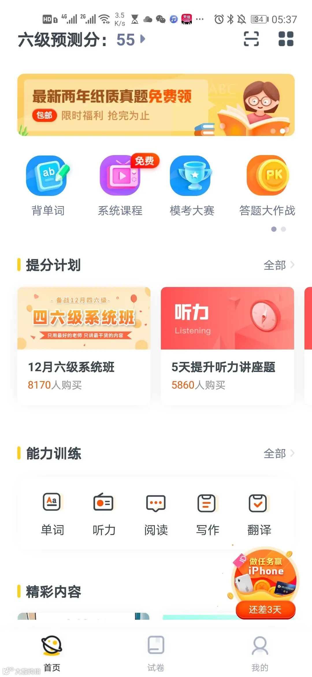 粉笔四六级原来属于粉笔公考APP里的一部分,后来独立出来专门作为英语四六级单词真题APP。