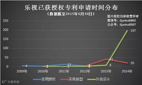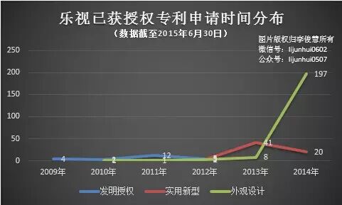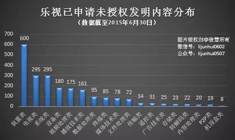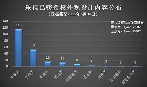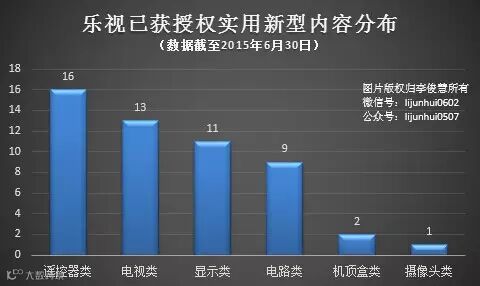 截止2015年6月30日,乐视已累计获得专利授权中,包括23件发明专利、63件实用新型专利和210件外观设计专利。