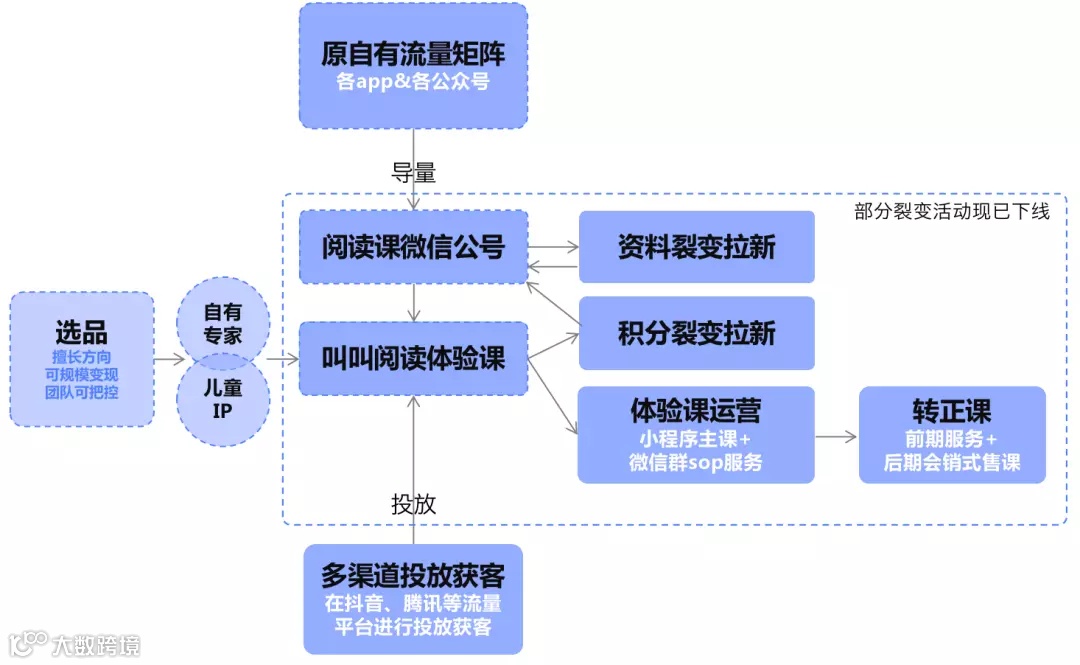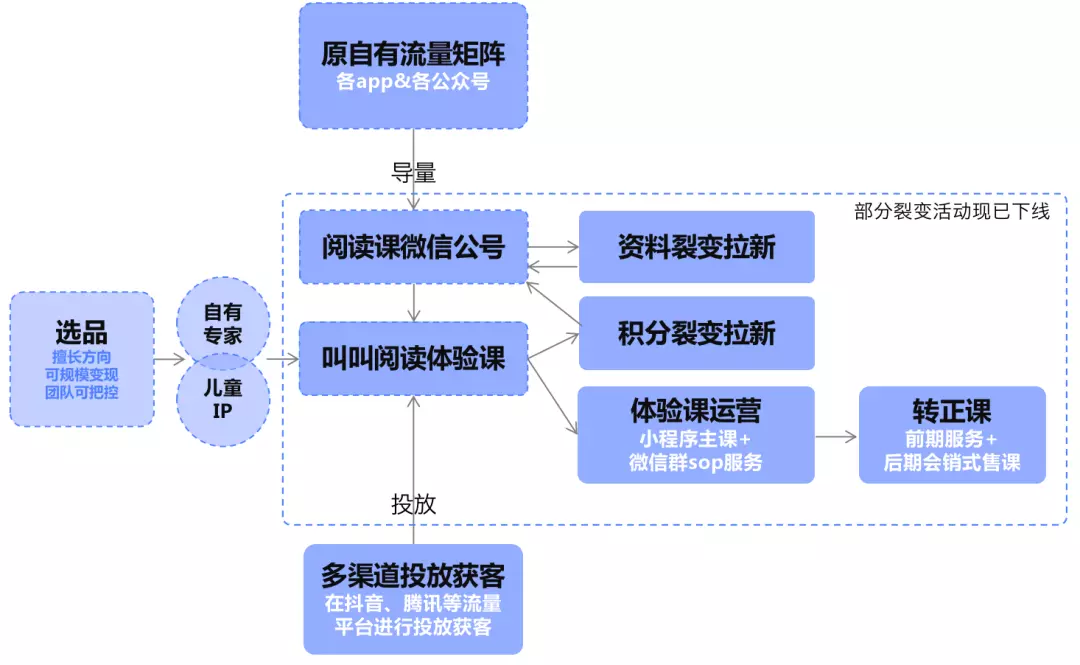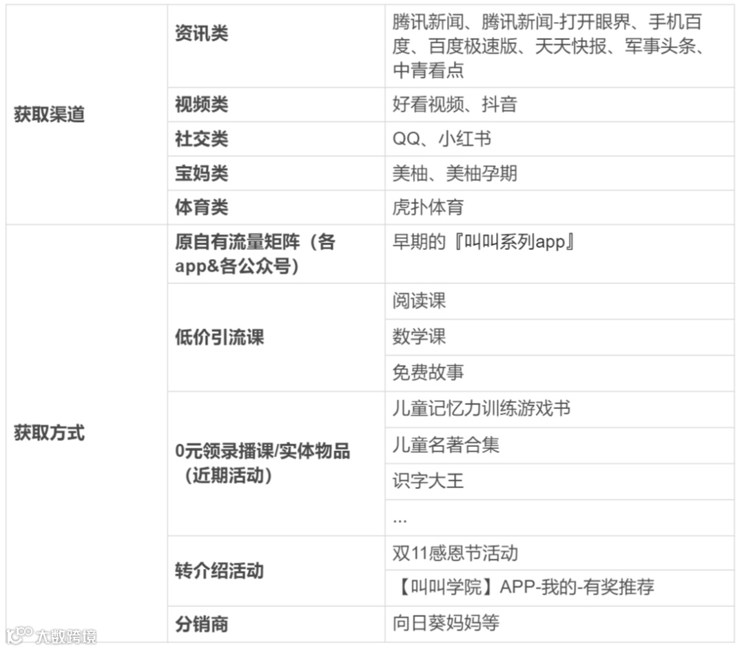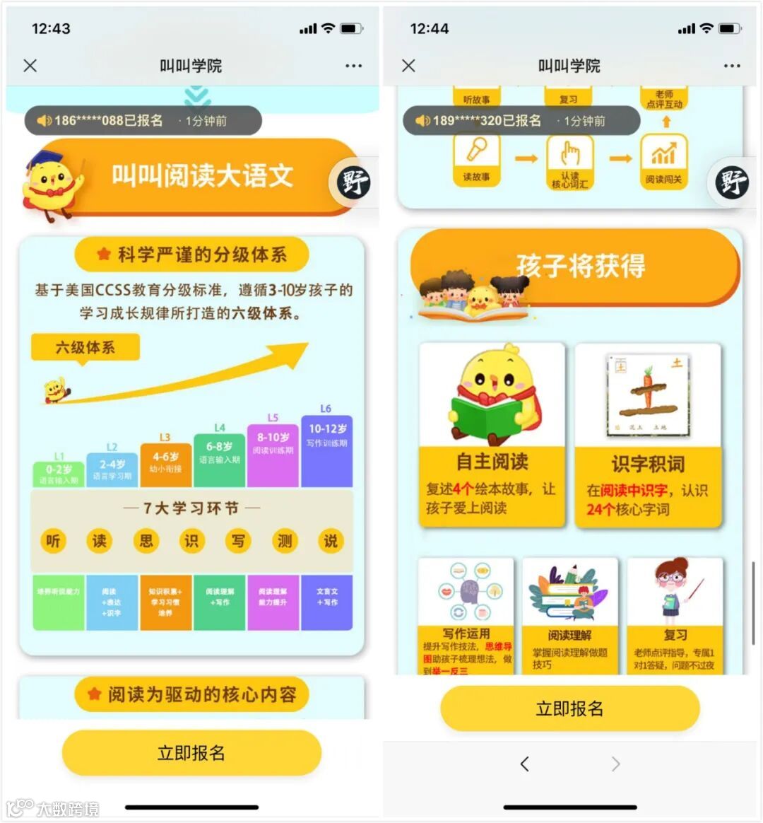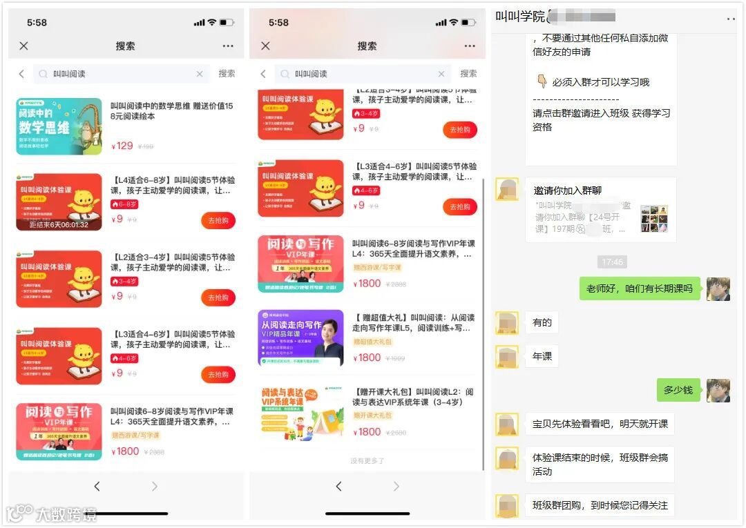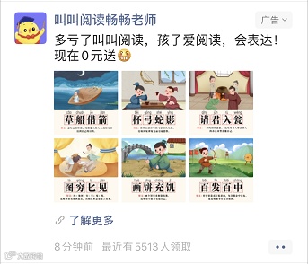 2018年推出独立运营的叫叫阅读,以体验课0-9.9元、正价课1488元模式,做到群内转化率15%-20%,平均人效20-30万;2019年7月,获得了数千万元的A+轮融资,9月传出月流水破千万。