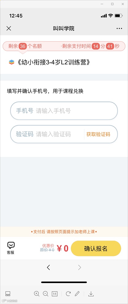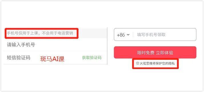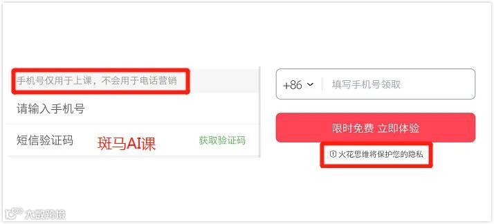 可加上安全提醒,在填写手机号下方,小字标识仅用于课程兑换,不会对外泄露,给用户以安全感,消除疑虑,参考火花思维和斑马AI课等