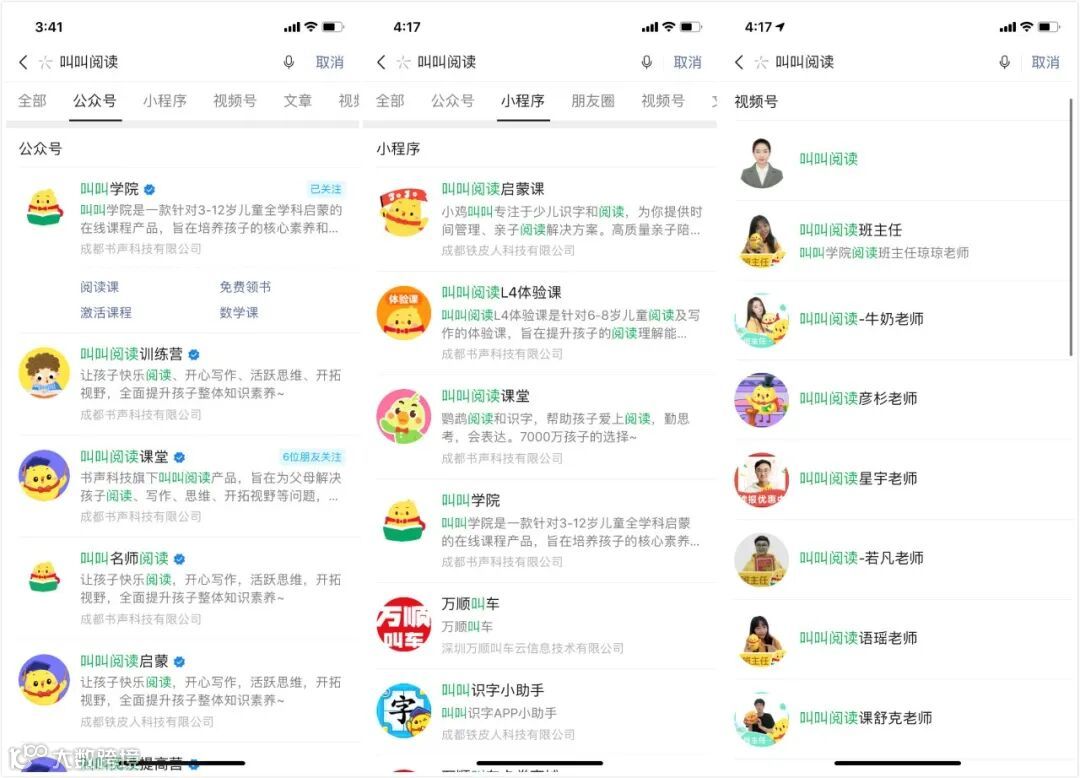 总结:小红书中搜索有3万+笔记,1485件商品,可以看出叫叫阅读主要在小红书布局,包括KOL宝妈的点评、对比、学习效果等笔记,也符合小红书是宝妈类的主战场。