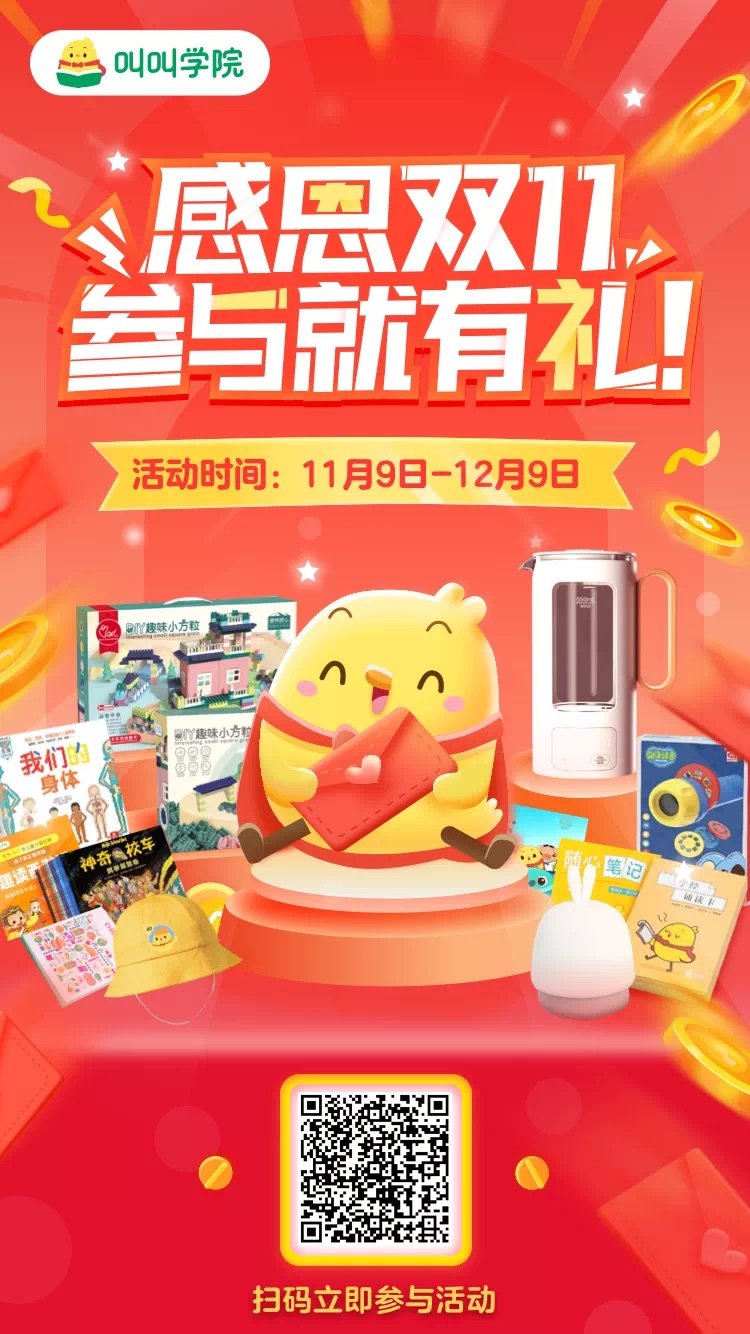 小鸡叫叫成立于2007年,成都书声科技有限公司旗下目前有叫叫阅读课与叫叫思维课,以阅读为载体,培养3-12岁孩子“爱阅读、勤思考、会表达”的多学科综合能力。通过“在线互动课堂+在线班主任辅导+线下配套纸质书”的“三位一体”教学模式,丰富孩子的知识,培养孩子的能力,提升孩子的素养。