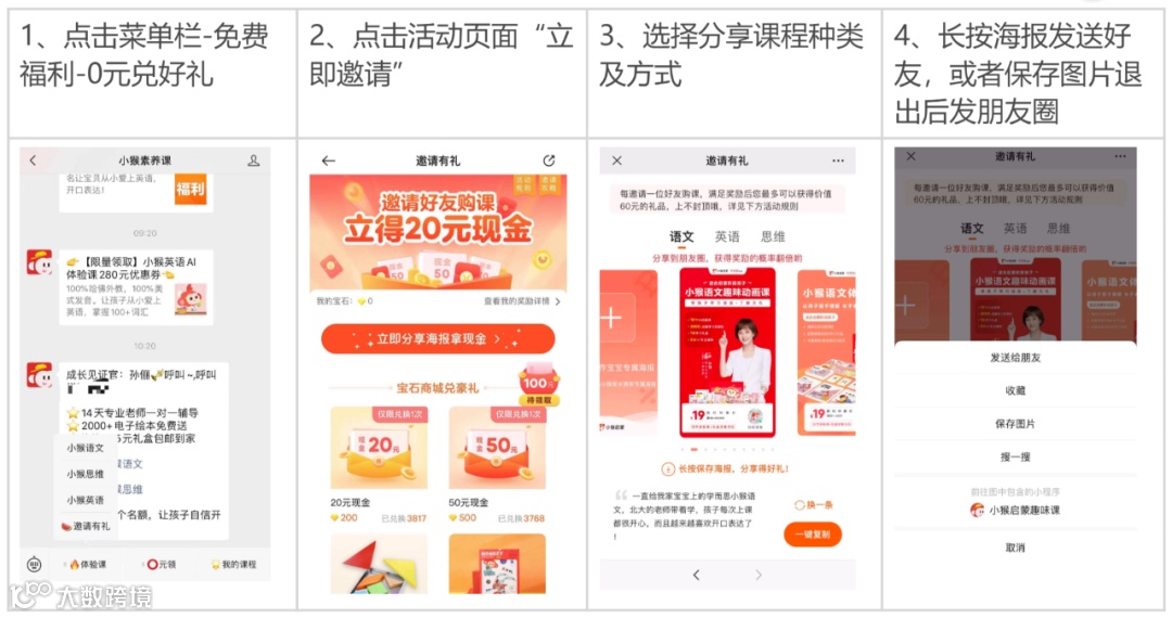 现阶段小猴启蒙AI有多个转介绍活动,本文仅侧重拆解“邀请好友购课,立得20元现金”活动