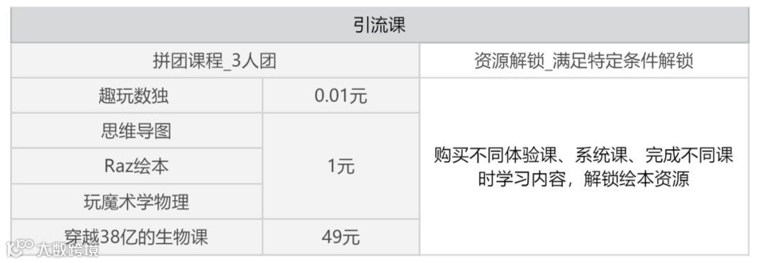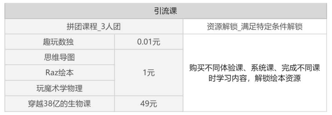 第二种:通过其他导流课/资源解锁吸引用户,再推荐购买体验课,继而转化系统课,如表2