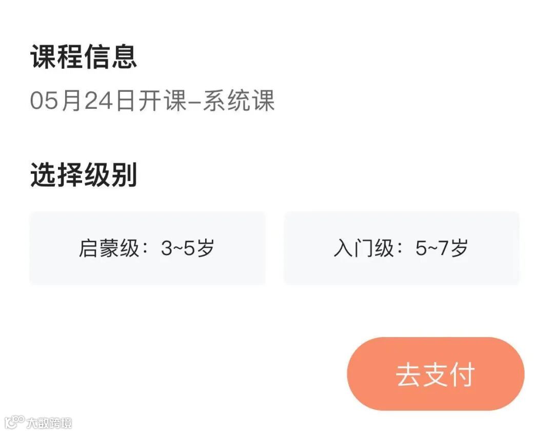 目前3个课程都只开放了L1,L2级别,但报名时的年龄区分是3-5岁,5-7岁(如图2),也就是L2课程含有部分L3内容,小猴课程体系很可能还在完善阶段