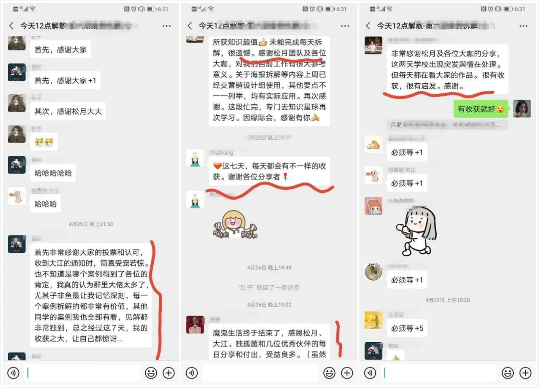 每天晚上9点,老师会邀请当期或往期优秀选上空降群里,分享关于案例拆解、运营增长方法论、教育圈行业观察等干货,非常非常非常重要!大家一定!一定!一定要记得上课哦~