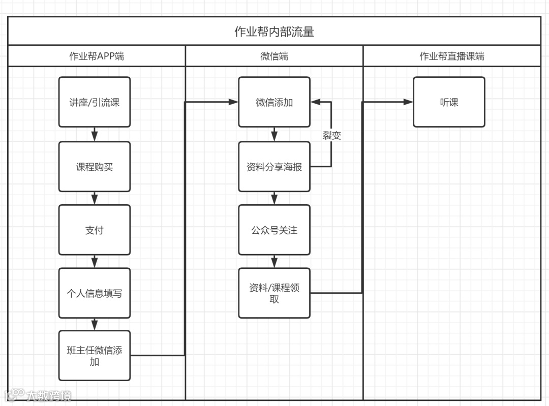 从引流课到正价课转化路径:作业帮APP流量——体验课/团购课/训练营——正价课