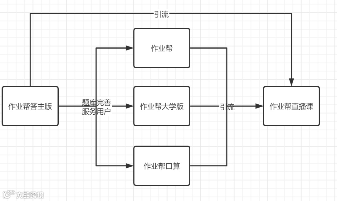 作业帮、作业帮口算版、作业帮直播课之间的引流关系