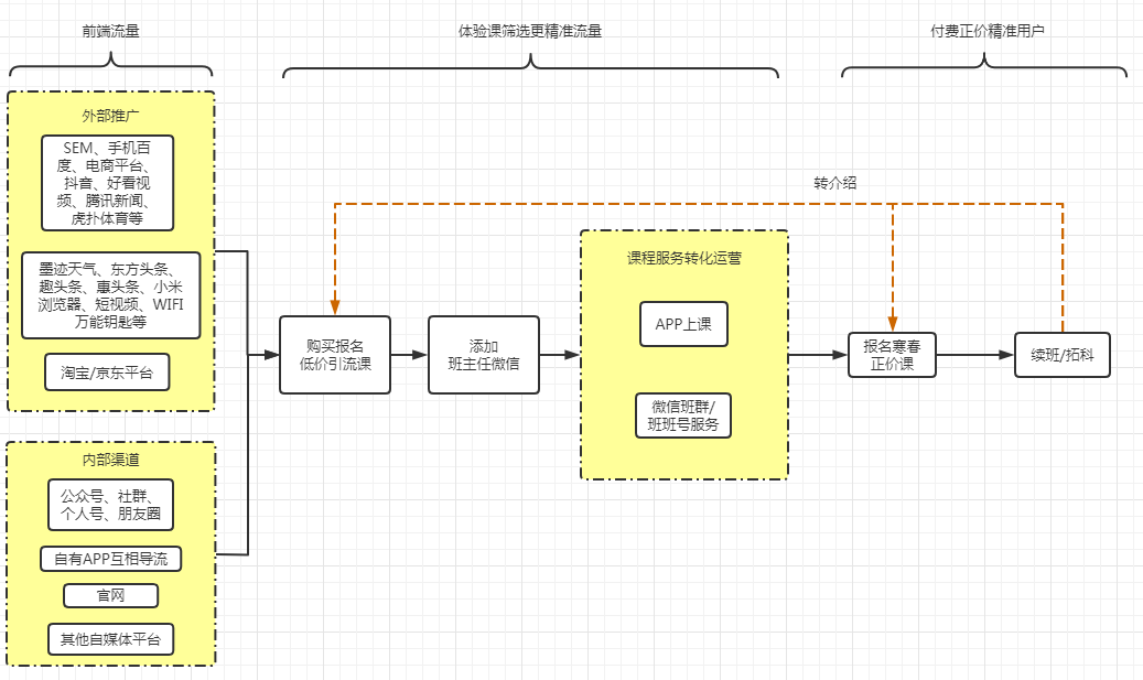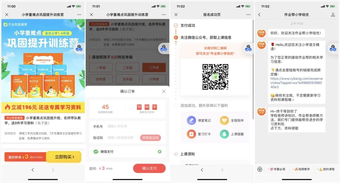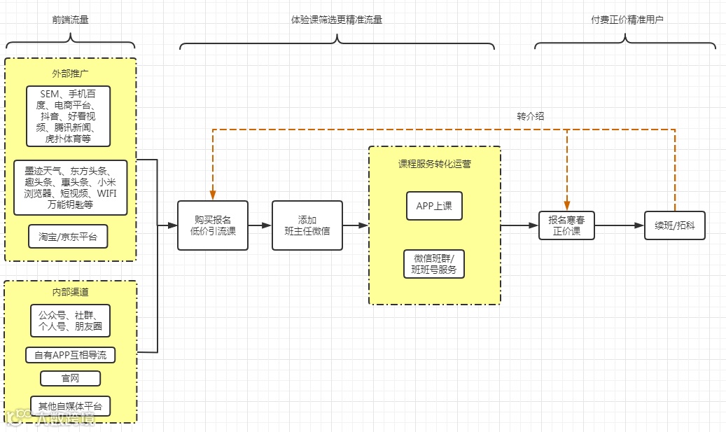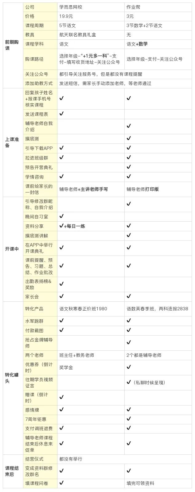 学而思和作业帮都是以低价双师直播引流体验课,通过5天课程体验+社群运营,最终来转化正价班。