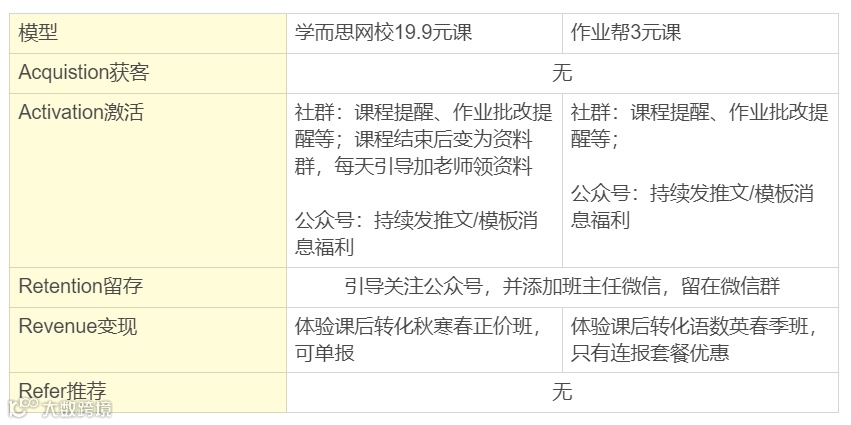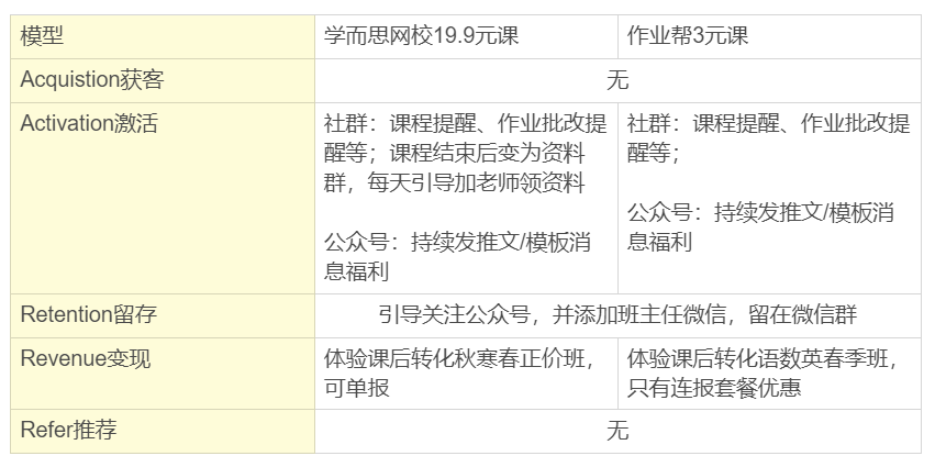 上面是比较具体的体验营流程,这里用AARRR模型来做整体的分析。