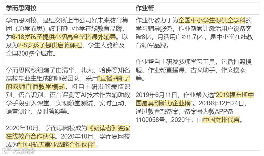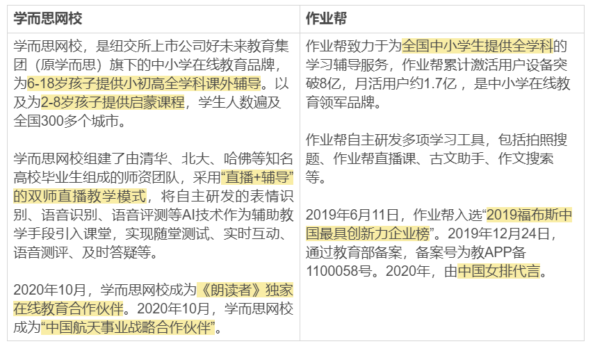 学而思网校和作业帮是k12在线教育行业的头部公司,两者在发展历程上有很多相似之处,而且都是双师体验引流课转化正价课,所以拿来做对比。